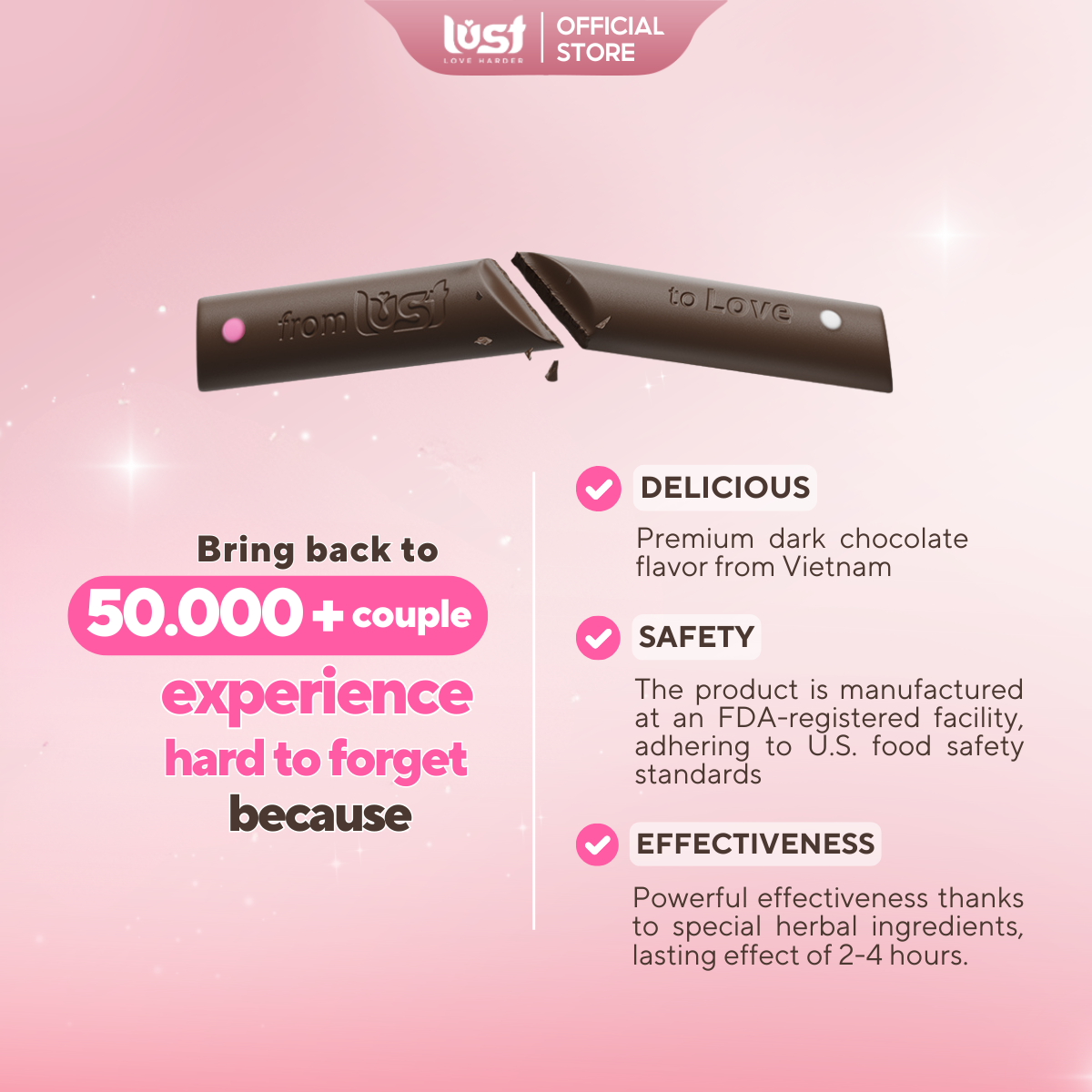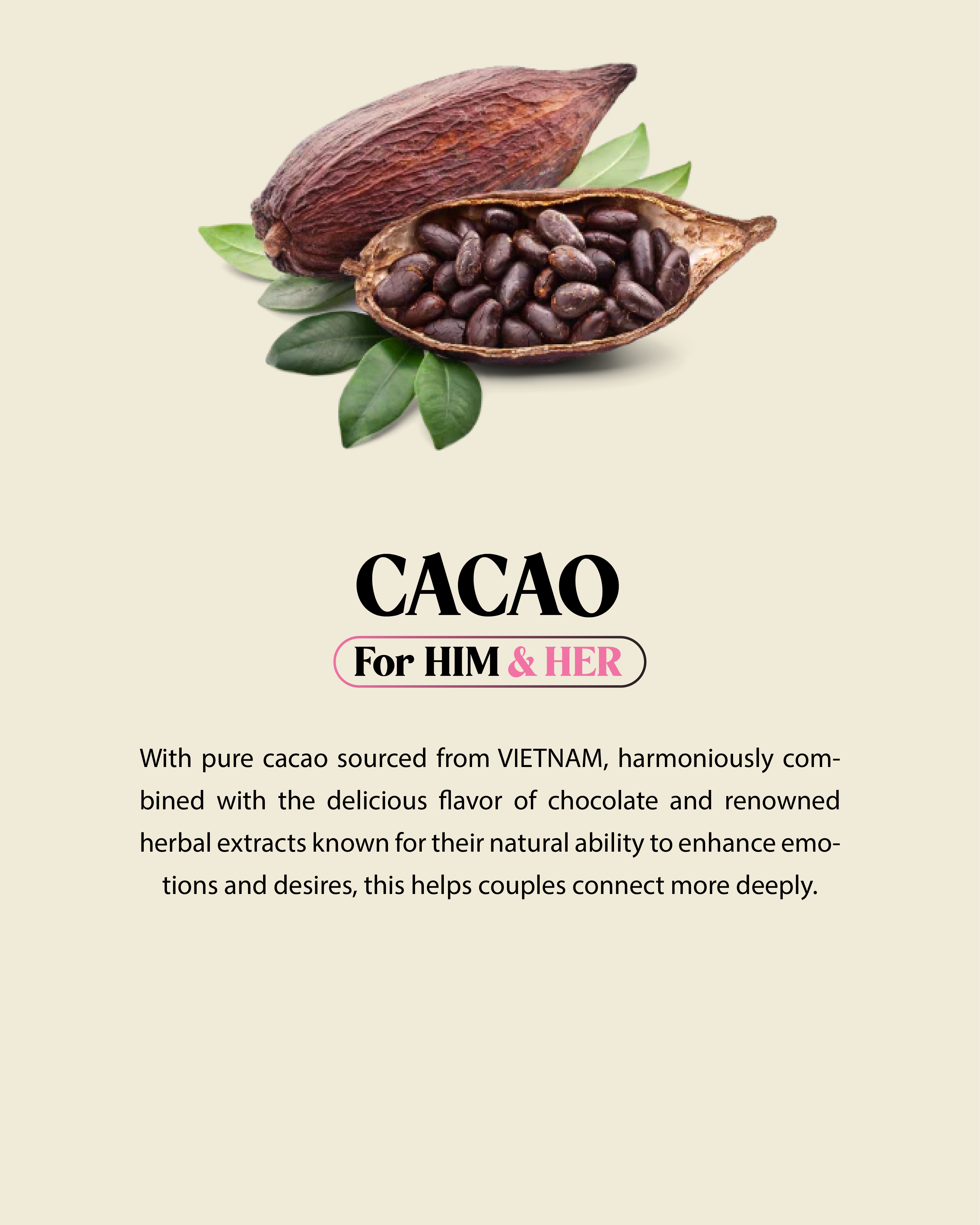 The combination of dark chocolate and precious herbs, researched to create a unique formula for each gender within the same bar.